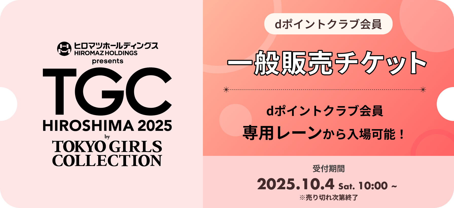 ヒロマツホールディングス presents TGC 広島 2025 dポイントクラブ会員一般販売(先着) 2025年10月4日(土)10:00~ ※売り切れ次第終了