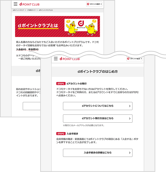 「STEP2 入会手続きの詳細はこちら」にてdポイントクラブ会員の登録を行う