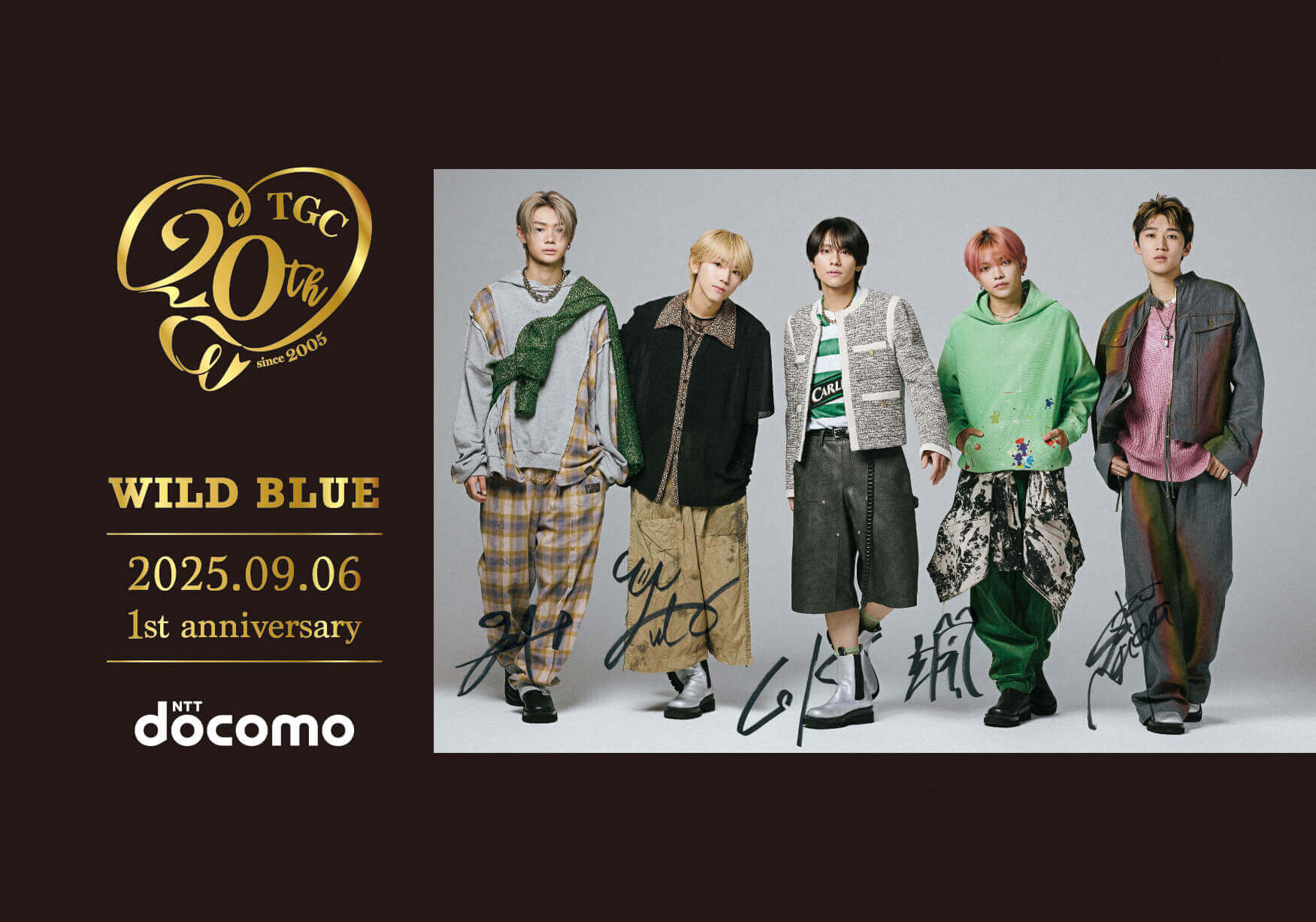 dアカウントにログインしてWILD BLUEとのミート&グリート権利付きチケットや、TGC20周年オリジナルグッズを当てよう!