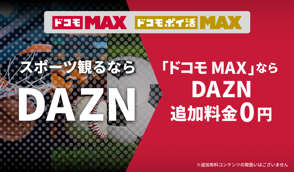 はい。「ドコモ MAX」「ドコモ ポイ活 MAX」では追加料金なしでDAZN for docomoをご利用いただけます。