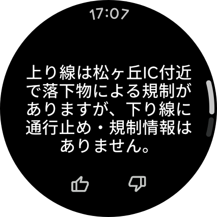 交通機関を使っていて気になるのは、渋滞や遅延情報、運行状況など刻一刻と変化していくリアルタイム速報です。これも「Gemini」なら「〇〇までの道の渋滞情報を教えて」と聞けば、所要時間と渋滞状況など、最新の交通情報を知ることができます。他にも「JALの運行状況を教えて」という問いに対してはフライトの悪天候による影響や遅延など詳細な情報をまとめて読み上げてくれます。こうした使い方も知っておけば、いざというときにスマートウォッチが役立ちますね。