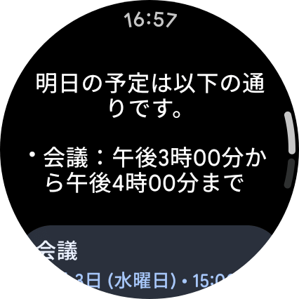 これで準備は完了です。あとはスマートウォッチの「Gemini」を呼び出して、スケジュールについて尋ねればすぐに予定を教えてくれるようになります。